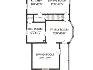 - Bedrooms: 11’0″ × 15’0″, 10’0″ × 12’0″, 9’6″ × 10’0″, 5’0″ × 9’6″